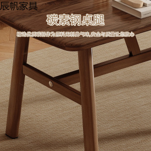 【高性价比组合】胡桃色120*70*74cm+三把黑皮牛角椅加粗加固