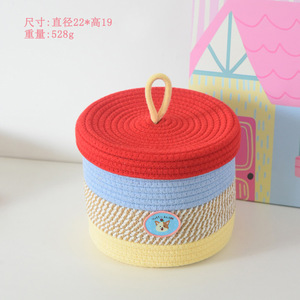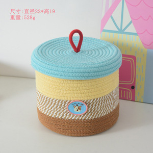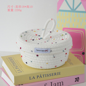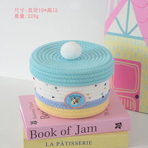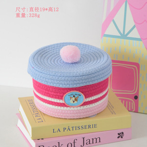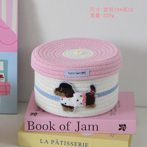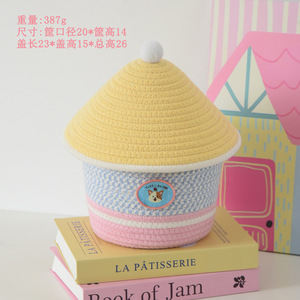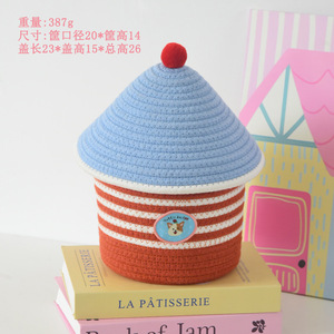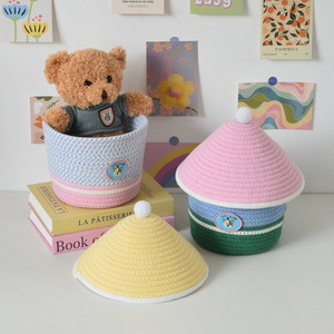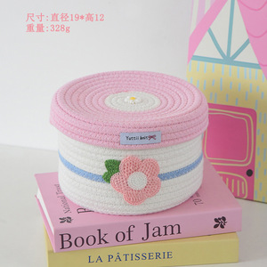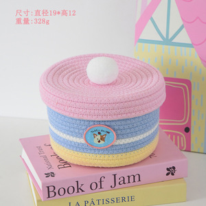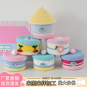 可爱编织收纳筐家居带盖杂物收纳篮桌面防尘化妆品收纳盒装饰摆件