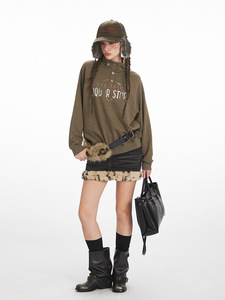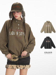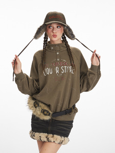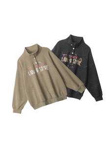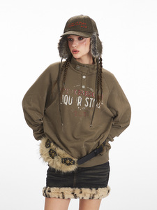 HeyHenry 美式复古宽松慵懒半高领卫衣男女潮牌印花秋季套头外套