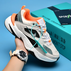 秋季新款增高厚底工作鞋女运动鞋全黑色男鞋ins风M4复古老爹鞋男