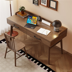 小户型简约实木书桌带抽屉挡板电脑桌家用学习桌原木办公桌写字台