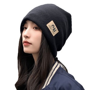针织帽子女字母春秋网红显脸小百搭针织帽冷帽包头堆堆帽潮秋冬季