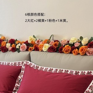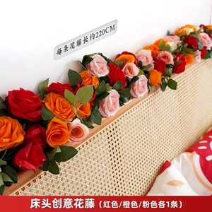 床头仿真花藤条结婚花高档玫瑰花吊顶空调管道花藤条遮挡婚房装饰