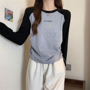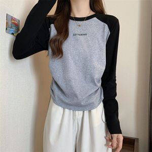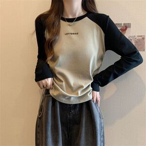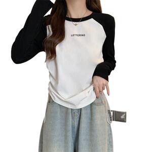 大码女装长袖t恤女2025春秋宽松显瘦休闲百搭设计感小众抽绳上衣