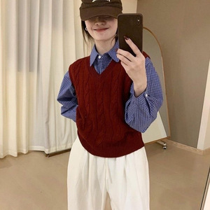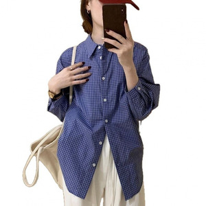 美式慵懒宽松蓝色格子衬衫女春秋季休闲百搭复古长袖衬衣叠穿上衣
