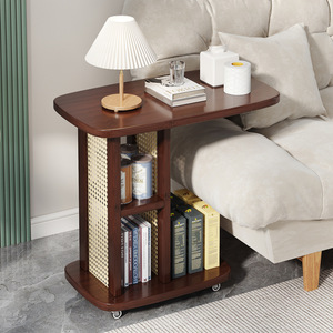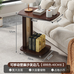 可移动茶几沙发边轻奢藤编小桌子茶水间客厅家用卧室创意收纳角几