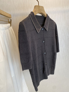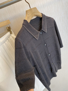 可遇不可求!!!渠道货~亚麻和纸纱条纹polo翻领夹色针织开衫女