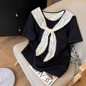 蕾丝披肩叠穿假两件黑色短袖T恤女2025夏季新款韩系时尚正肩上衣