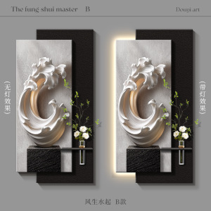 现代高级感正对门入户玄关装饰画风生水起寓意好挂画走廊尽头壁画