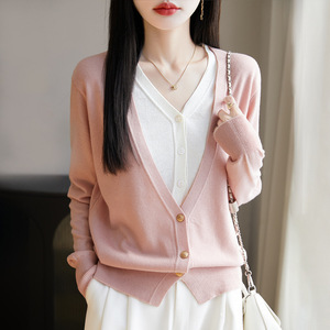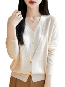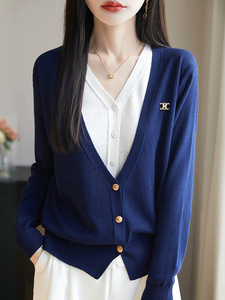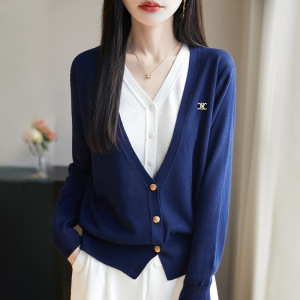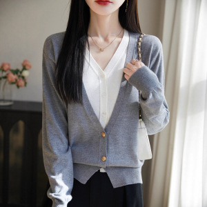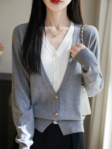 秋假两件撞色v领长袖针织衫薄款毛衣内搭打底衫拼色毛衣上衣女装