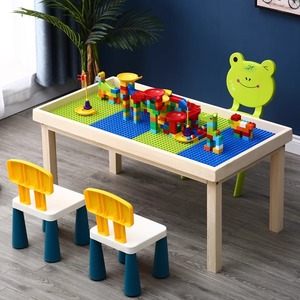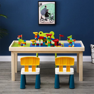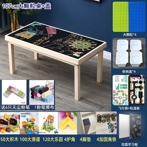 实木儿童积木桌多功能沙盘拼装积木化石考古挖掘玩具桌大号游戏桌