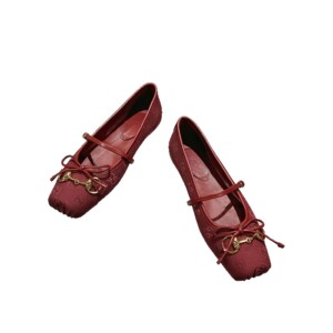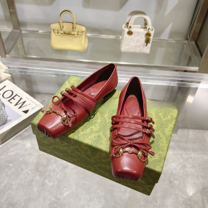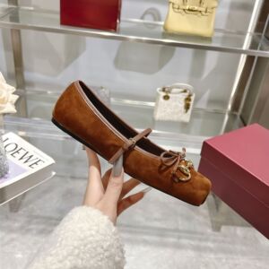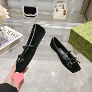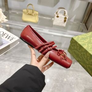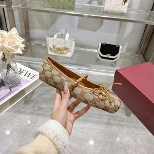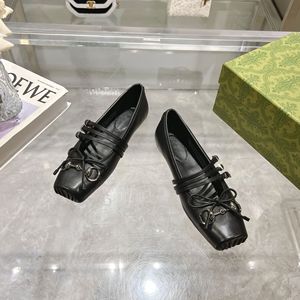 25夏季新款G家芭蕾舞鞋马衔扣秀场猪鼻子蝴蝶结平底大码真皮单鞋