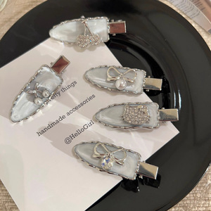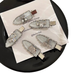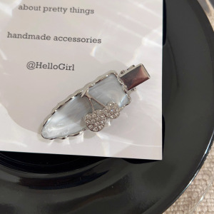 尊嘟好洋气!银灰色水钻樱桃蝴蝶结鸭嘴夹刘海侧边夹碎发夹头饰女