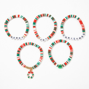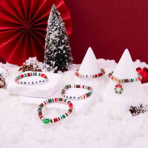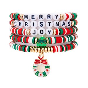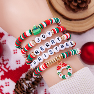圣诞主题花环手链套装时尚休闲圣诞经典配色圣诞树字母串珠手链