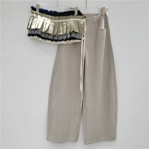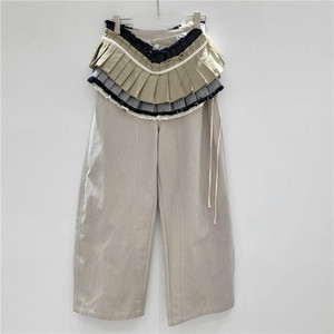 2025秋季新款美式辣妹风宽松显瘦百搭拼接设计感抽绳腰封弯刀裤女