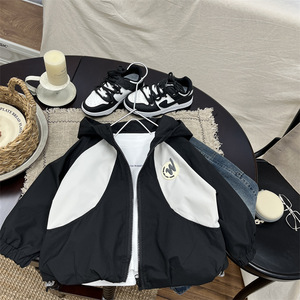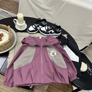 儿童外套2025秋季新款童装男童韩版拼色拼接连帽冲锋衣宝宝外穿潮
