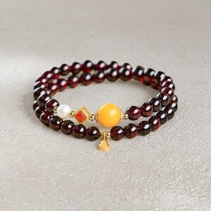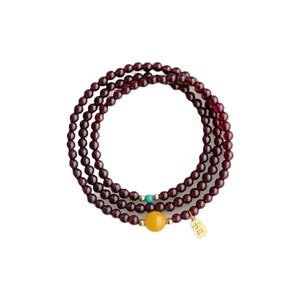 石榴石手串女款三圈紫牙乌7a纯天然水晶手链酒红色宝石多圈小米珠