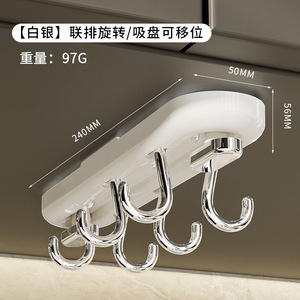 镀银白【带6个旋转移动挂钩】可吸附顶柜✓