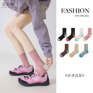中筒袜子女束腰压力毛巾底运动袜子健身跑步拼色无骨棉袜诸暨袜子