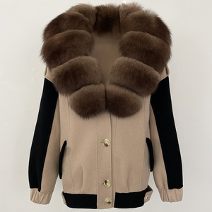 2025秋冬季新款女装韩系高级感双面呢真狐狸毛领加厚保暖上衣外套