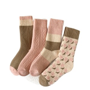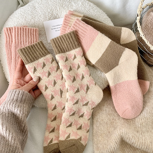 粉色毛绒加厚袜子女冬季加绒超厚保暖女士中筒袜冬天特厚女地板袜