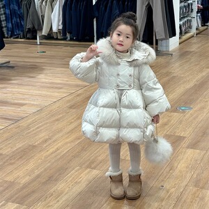 2025新款羽绒棉衣女童中长款公主外套冬季洋气保暖加厚纯色棉服