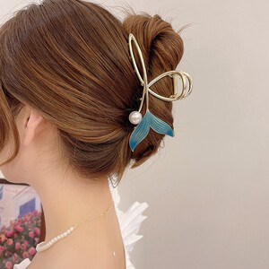 蓝色鱼尾抓夹女韩版气质鲨鱼夹头饰发饰大号后脑勺发卡大发夹批发