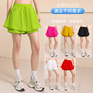 外穿宽松运动短裤女高腰收腹防走光速干跑步训练健身瑜伽服三分裤