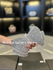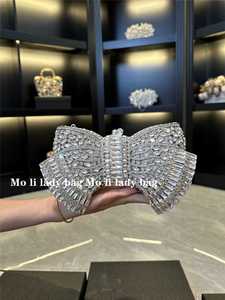2025重工手工时尚百搭满水钻闪亮不灵蝴蝶结盒子宴会手提斜挎包
