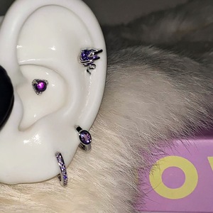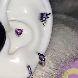 梦幻紫色爱心小蛇耳骨钉钛钢甜欲辣妹高位龙爪耳蜗钉闪钻耳圈耳饰