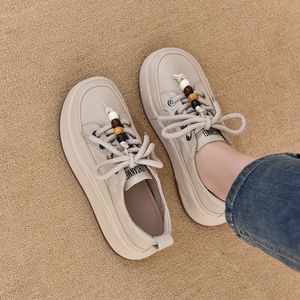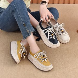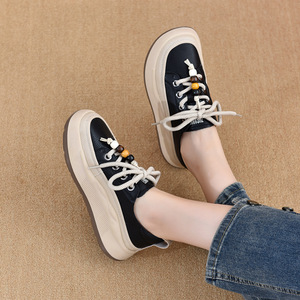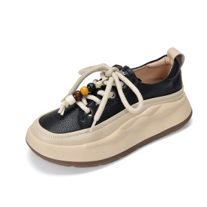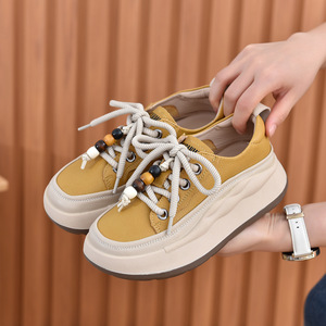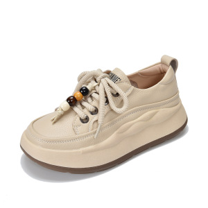 袋鼠鞋厚底增高休闲单鞋女秋季新款真皮系带圆头舒适运动女鞋538
