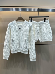 25秋冬新款立领四叶草暗纹提花针织毛衣开衫➕抽绳短裤套装
