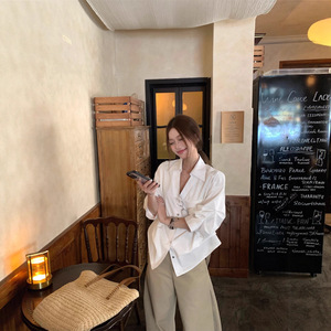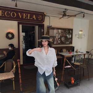 实拍老钱风复古气质白色长袖衬衫女2025夏季收腰显瘦小众百搭上衣