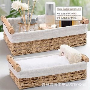纸绳藤编收纳筐日式木把储物筐桌面茶几收纳盒玩具零食化妆品收纳