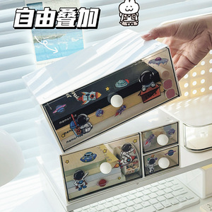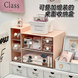 桌面收纳盒抽屉式透明书桌上文具化妆品置物架办公室整理盒批发