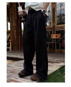 日系复古慵懒感老钱风直筒休闲长裤男款纯色薄款亚麻西裤时尚百搭