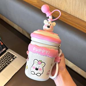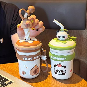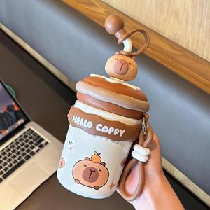 保温杯316不锈钢高颜值搅拌杯 儿童上学专用吸管杯卡皮巴拉水杯女