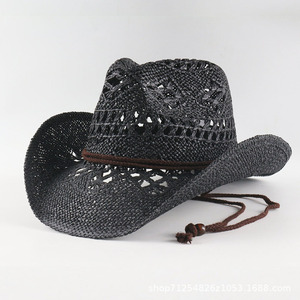 新款春夏户外男女情侣帽旅游防晒遮阳帽西部牛仔草帽手工编织马兰