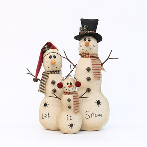 工厂批发麻布机绣图案三口之家雪人公仔玩偶圣诞节布景装饰摆件