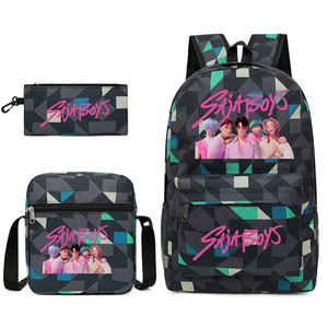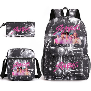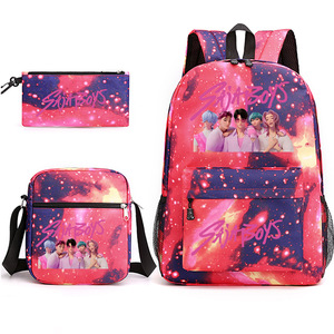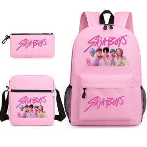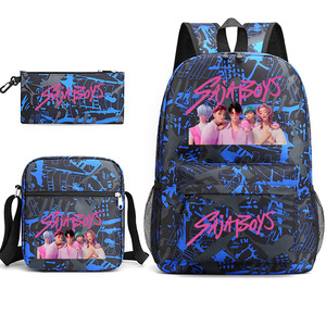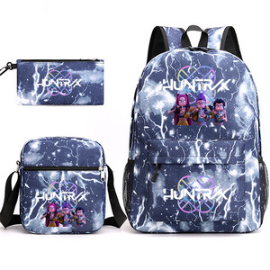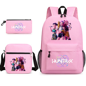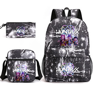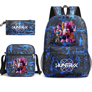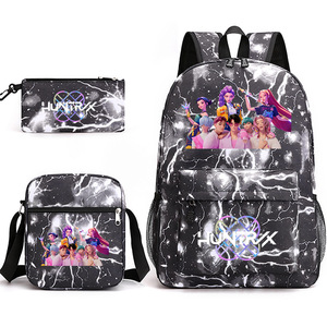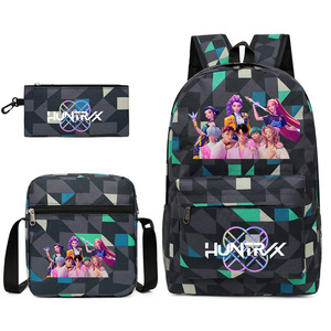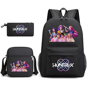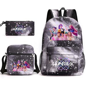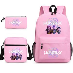 2025跨境新款kpop猎魔女团印花学生书包双肩包单肩笔袋三件套