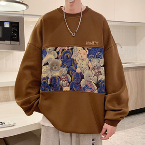 小熊拼接圆领卫衣男生春秋季设计感小众oversize重磅潮牌休闲上衣