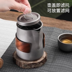 钛化合金便携式旅行茶具套装茶壶双层茶杯户外露营泡茶装备批发
