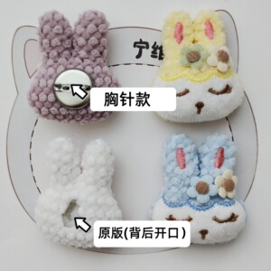毛绒韩版眯眼小兔公仔胸针配饰可爱少女心小花兔装饰服装发饰配件
