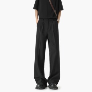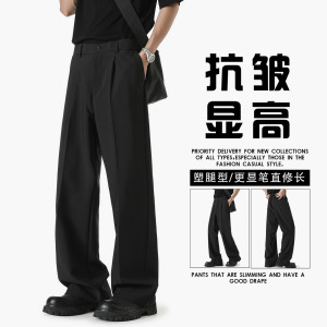 美式高街cleanfit廓形西裤黑色四季款休闲裤男女直筒微喇夏季长裤