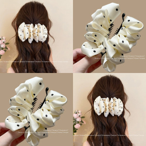 韩系缎面波点香蕉夹横夹发夹女2025新款高端后脑勺半扎发大号抓夹