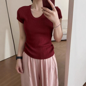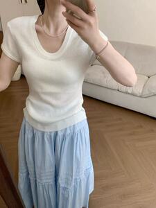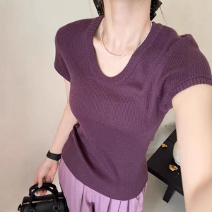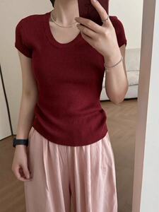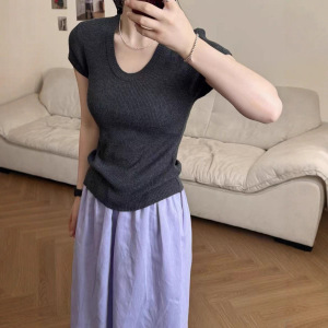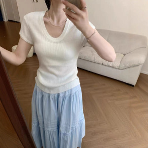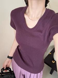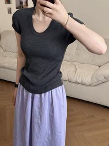 2025夏季新款纯欲风U领时尚设计感毛针织衫修身显瘦百搭女装上衣