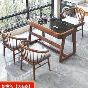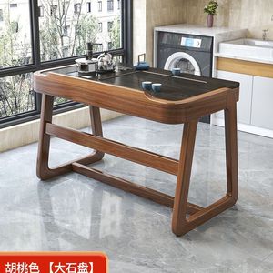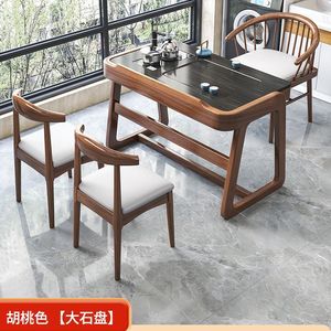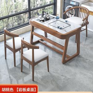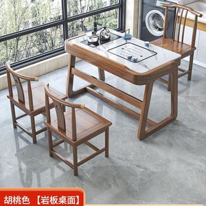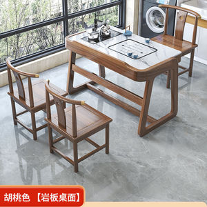 2024简约现代实木玄驹茶台桌椅一体阳台办公客厅家用新中式岩板