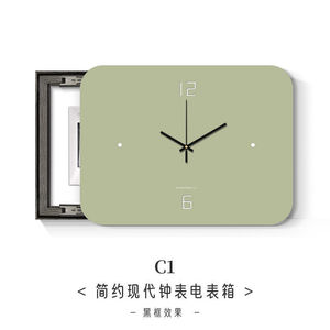 箱电闸空简约钟表挂钟打孔时钟开箱带遮挡配电箱免电表箱装饰画