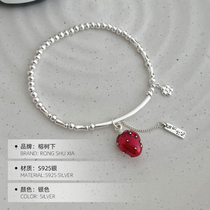 榕树下S925银甜酷风莓有烦恼手链女小众甜美ins潮草莓弹力绳手串