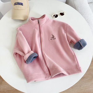 女童摇粒绒外套秋冬季2025新款保暖上衣男孩女孩休闲拉链抓绒夹克